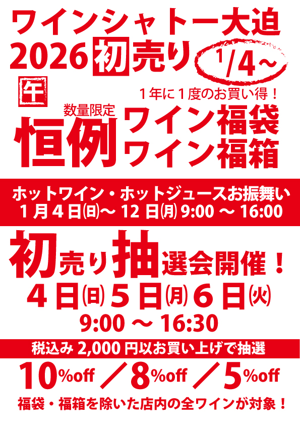 ・1/1(木)~1/4(日) 10時~16時 頃